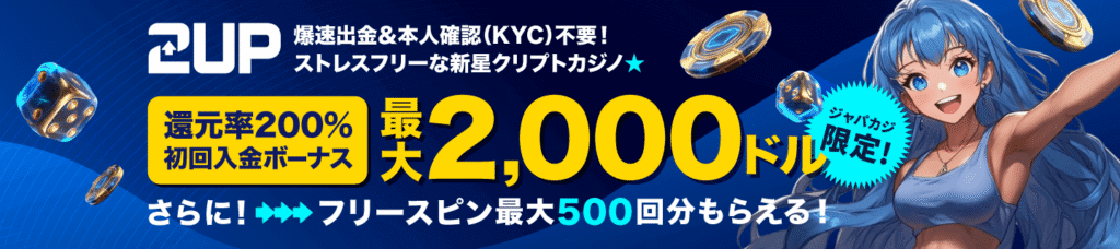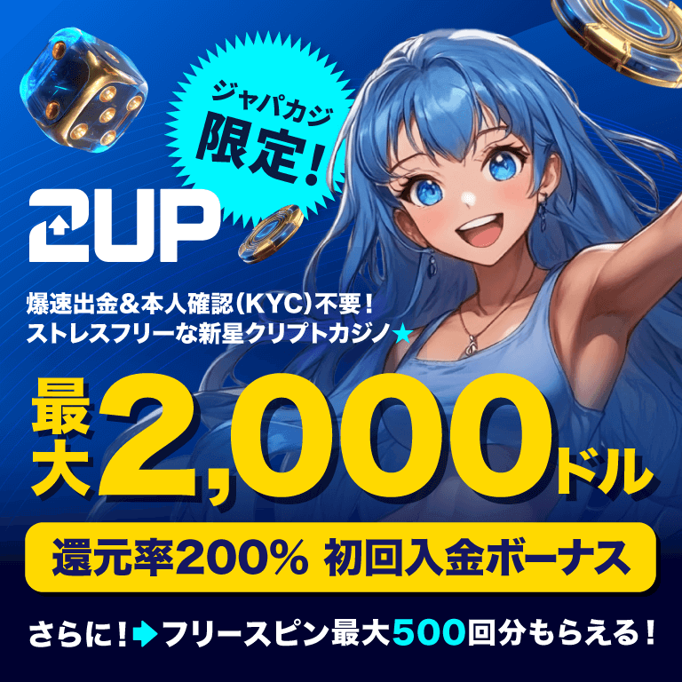 2UPの200%ウェルカムボーナス+フリスピ最大500回分!【ジャパカジ限定】