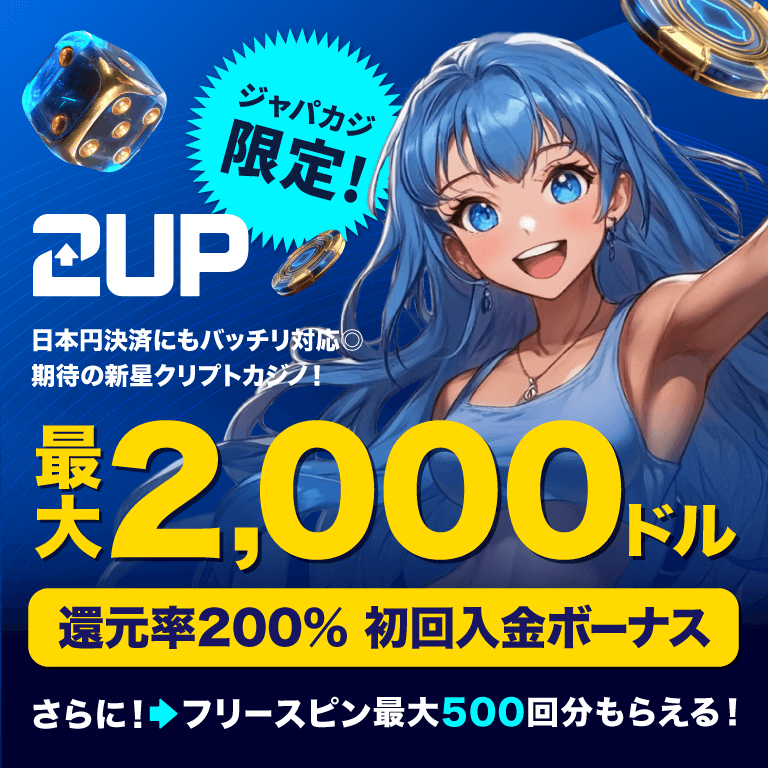 2upの200%ウェルカムボーナス+フリスピ最大500回分!【ジャパカジ限定】