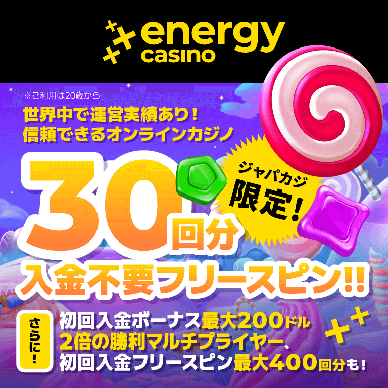 【ジャパカジ限定】エナジーカジノの入金不要フリースピン30回&入金ボーナス!