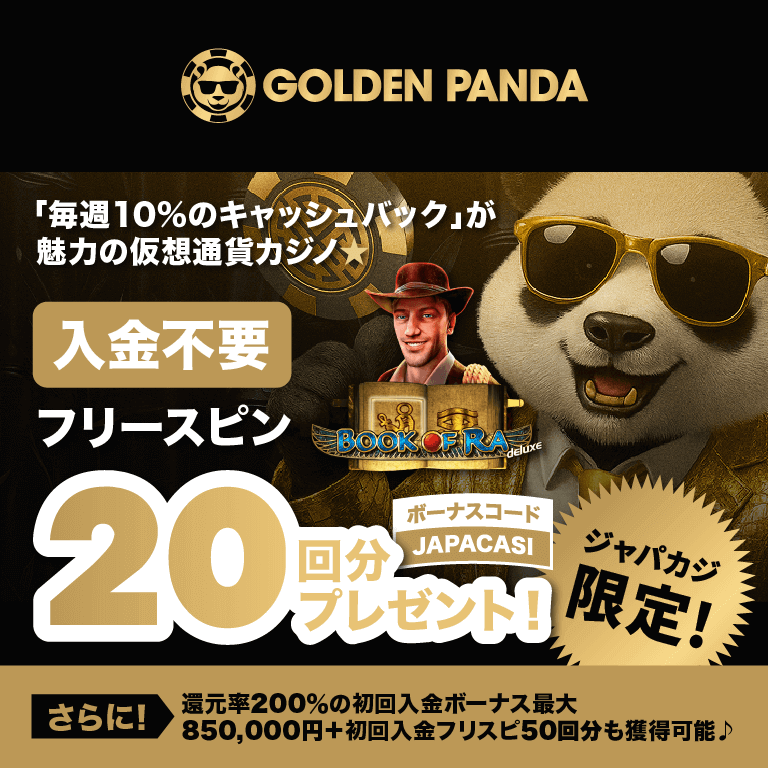 そんな期待の新星カジノゴールデンパンダが、ジャパカジ読者の皆さんの為だけに! 入金不要フリースピンを20回分も用意してくれちゃいました(ノ◕ヮ◕)ノ*:・゚✧ 対象ゲームはNovomatic社の名作「Book of Ra Deluxe」🤩🔥