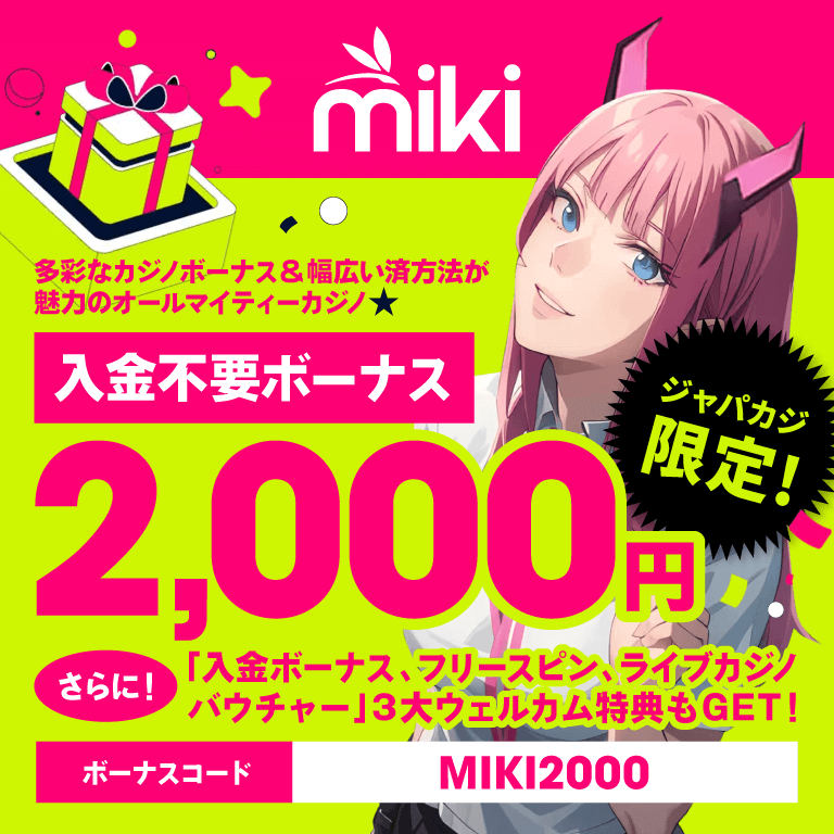 Mikiカジノの登録ボーナス2,000円分【ジャパカジ限定】