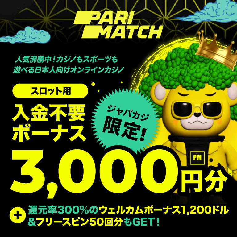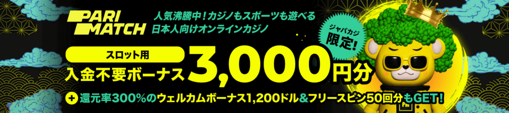 パリマッチの入金不要ボーナス3,000円分で人気スロットを無料プレイ♪【ジャパカジ限定】