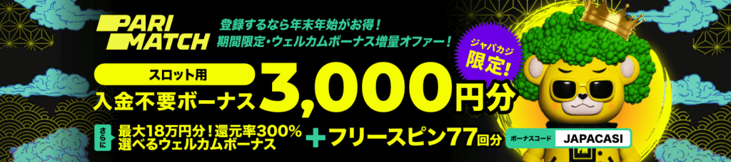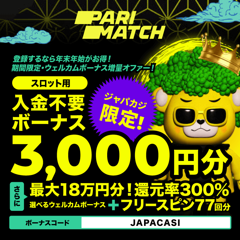 パリマッチのスロット専用無料ボーナス&年末年始オファー【ジャパカジ限定】