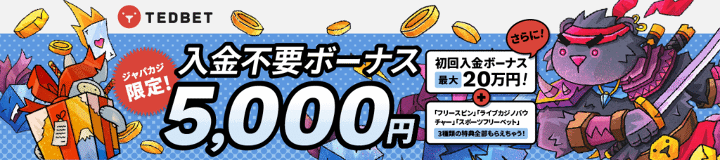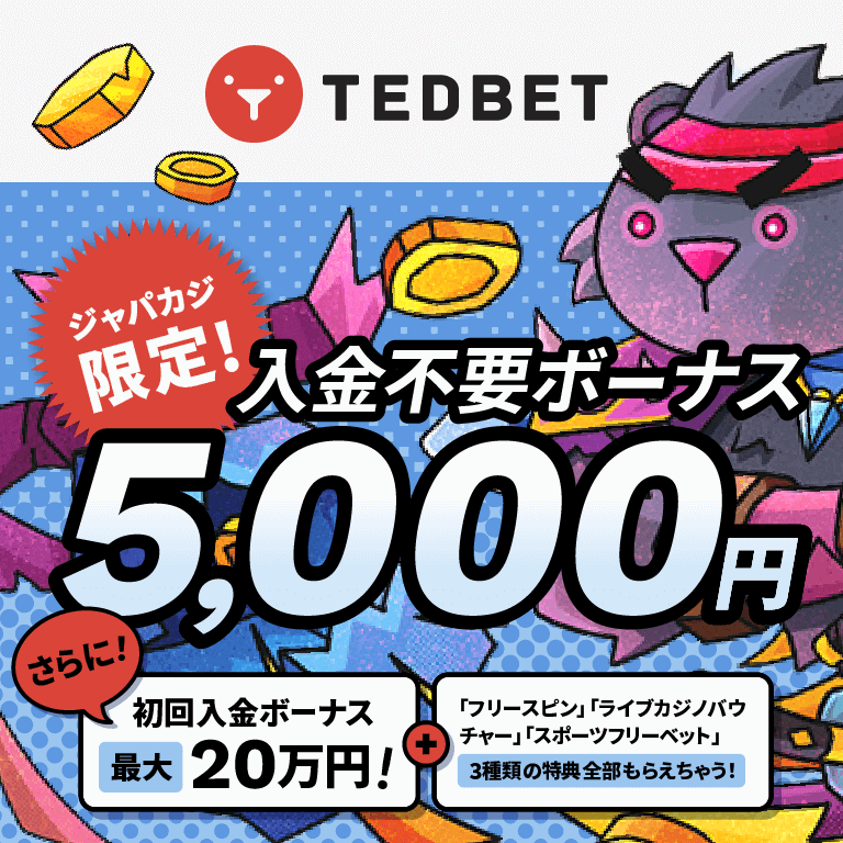【ジャパカジ限定】Tedbetの入金不要ボーナス5,000円分