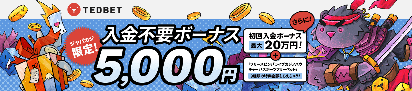 ジャパカジ限定|Tedbetで入金不要ボーナス5,000円分をゲット!
